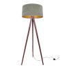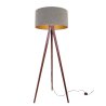 Ten model lampy podłogowej wykonano z drewna i metalu. Złoty abażur jest połączeniem welurowej tkaniny i materiału PCV.