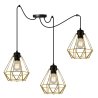 Regulowana lampa wisząca typu pająk, 3 złote, druciane klosze 19 cm, kształt diamentu, E27