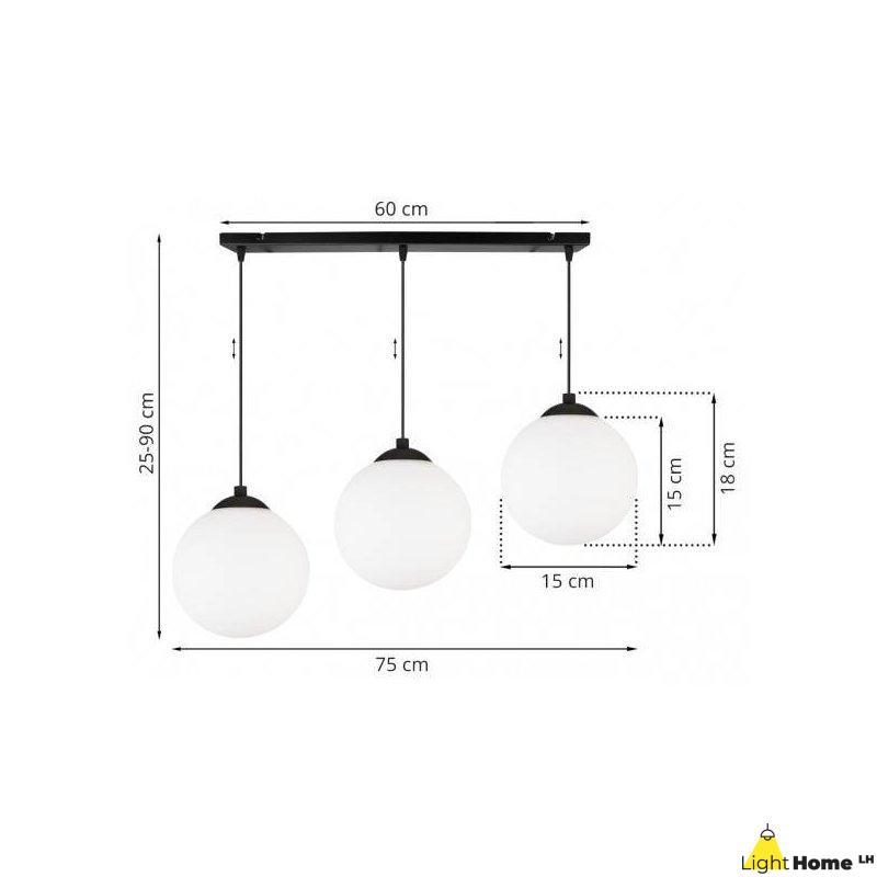 Uniwersalna lampa wisząca z trzema źródłami światła powstała w polskiej fabryce z bezpiecznych dla środowiska, solidnych materiałów. Klosze z mlecznobiałego szkła mają grubość, zapewniającą bezpieczeństwo jego użytkowania. Trwałą konstrukcję wykonano z metalu pomalowanego proszkowo na czerń.