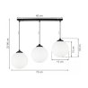 Lampa wisząca sufitowa, trzy klosze biała kula 15 cm, czarna konstrukcja, prostokątna podsufitka, E27