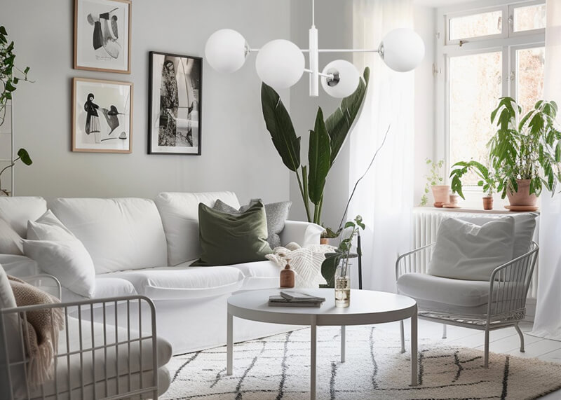 Połączenie czarnej lub srebrnej konstrukcji z białymi kloszami sprawia, że lampa łatwo dopasowuje się do różnych kolorów ścian i mebli, jednocześnie dodając wnętrzu charakteru i stylistycznej harmonii.