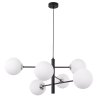 Lampa sufitowa VICENZA, długi żyrandol glamour, czarny, chromowane akcenty, białe kule