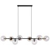Lampa sufitowa SIENA, wisząca, długi czarny żyrandol listwa, glamour, bezbarwne kule, złote akcenty