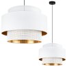 Lampa sufitowa wisząca ASTI, biały podwójny abażur 45cm, ażurowy, złoty środek glamour, gwint E27
