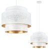 Lampa sufitowa wisząca ASTI, biały abażur z siatki, złoty środek, styl glamour, nad stół, do pokoju, salonu