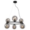 Lampa sufitowa wisząca AURA, czarny ring z grafitowymi szklanymi kloszami, styl molekularny