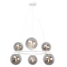 Lampa sufitowa wisząca żyrandol AURA, duża biała obręcz, grafitowe szklane kule, nad stół i wyspę
