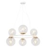 Lampa sufitowa wisząca AURA, nowoczesny glamour, biało-złoty żyrandol ring ze szklanymi kulami