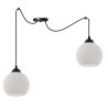 Lampa sufitowa wisząca pająk loft RIFFLE, biała ryflowana kula, 2 źródła światła, do salonu i jadalni