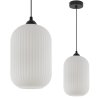 Lampa wisząca sufitowa RIFFLE, pojedynczy żyrandol z białym szklanym kloszem, ryflowany, styl glamour