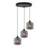 Lampa wisząca sufitowa RIFFLE, potrójna, czarna konstrukcja, ryflowane grafitowe klosze, gwint E27