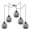 Lampa wisząca sufitowa RIFFLE, żyrandol, czarny pająk loft, grafitowe szklane kule, 5 źródeł światła