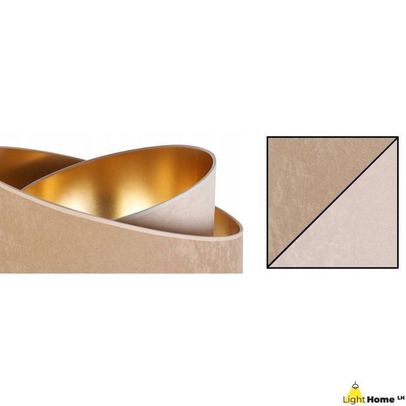 Lampa ta wykonana jest z metalu ze złotym wypełnieniem, PCV oraz tkaniny na abażur. Zastosowane materiały są trwałe i dodają eleganckiego akcentu do Twojego projektu.