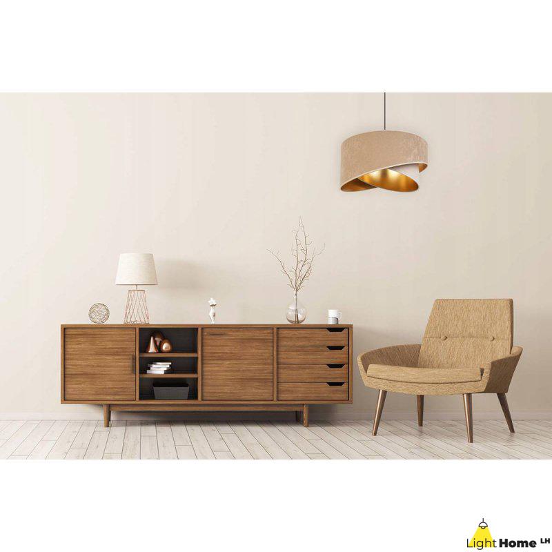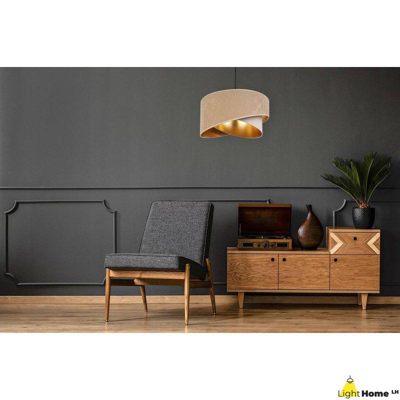- Abażur wykonany jest z połączenia metalu, PVC i tkaniny, dzięki czemu jest zarówno trwały, jak i elegancki