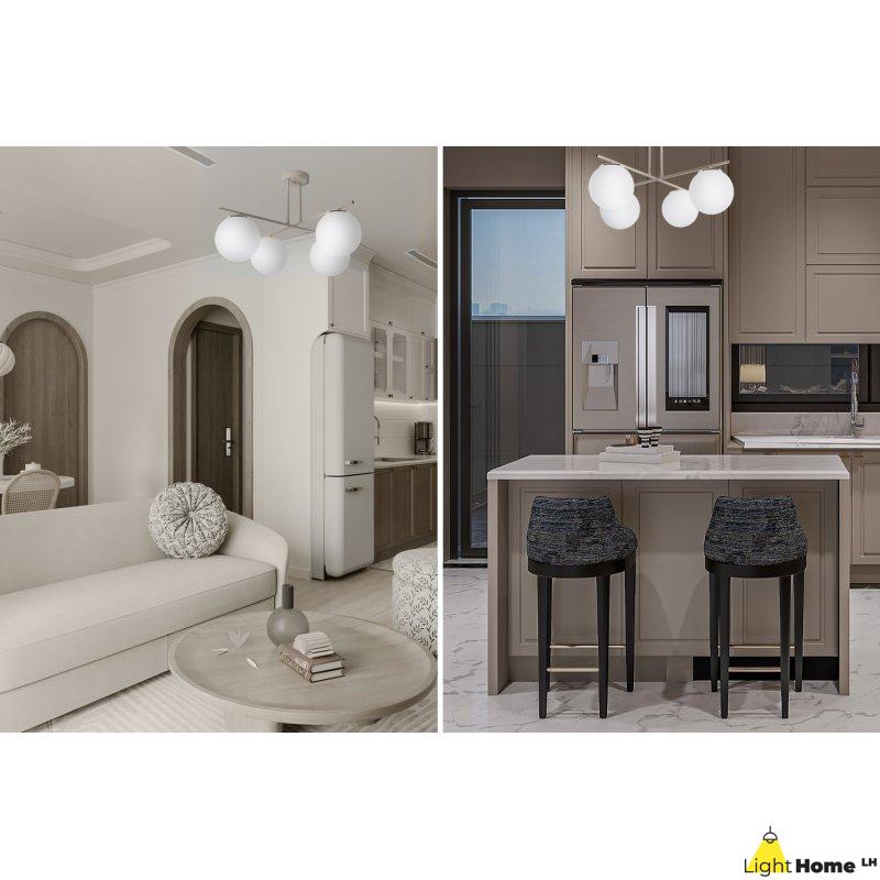 Lampa sufitowa wisząca żyrandol MODENA kaszmirowy beż białe szkło glamour nowoczesna