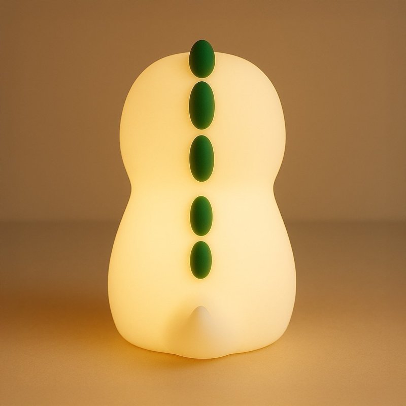 Urocza lampka DINO zachwyca dziecięcym designem i praktycznością – oferuje barwne, łagodne światło RGB z możliwością przyciemniania. Dzięki silikonowej obudowie jest miękka i odporna na uszkodzenia, a jej zasilanie przez akumulator ładowany USB daje pełną swobodę użytkowania. Sprawdzi się zarówno przy zasypianiu, jak i jako lampka nocna.