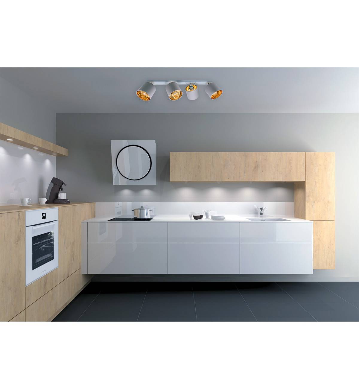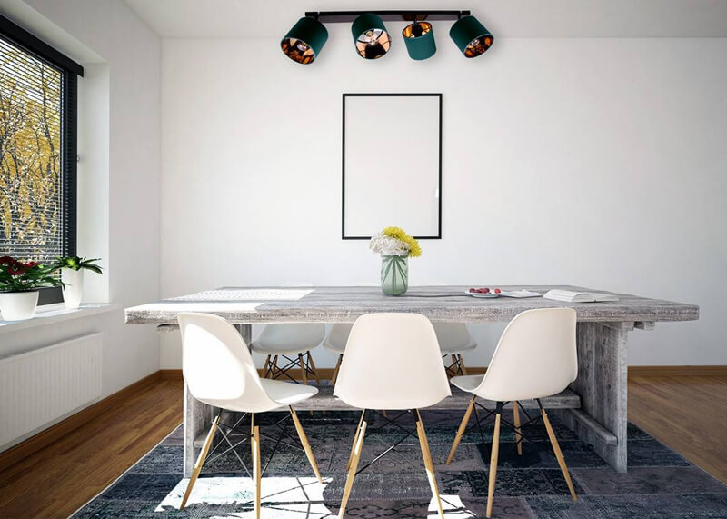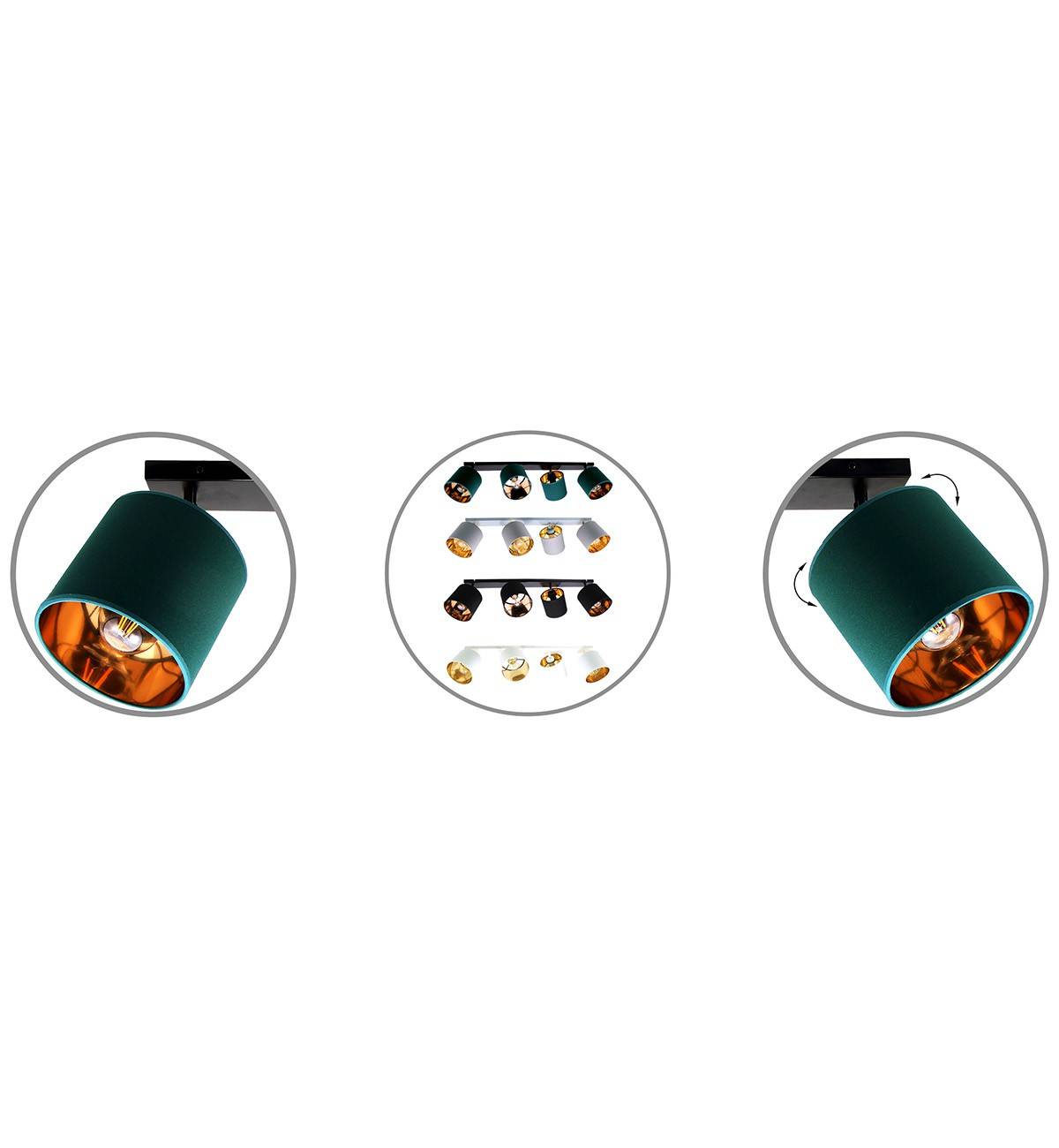 Plafonowa forma lampy sprawia, że jest to rozwiązanie praktyczne i wygodne w codziennym użytkowaniu. Abażury wpływają na równomierne rozchodzenie się światła, co sprzyja komfortowi przebywania w pomieszczeniu i budowaniu spójnej atmosfery. LAmpa dostępna w wielu kolorach: białym, czarnym szarym oraz zielonym.
